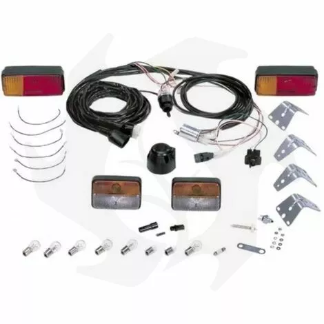 Le kit comprend:Câblage avec accessoires pré-assemblés.Longueur de câble 4 mtPhares directionnels 114×76 mmFeux arrière halogènes 162×70 mmIntermittenceSupports universels en LAttaches de câbleLes lampesDéviateur de flèchesPrise 7 brochesFlèches vertesCâble de 4 m avec accessoires pré-assemblésChanger de sto