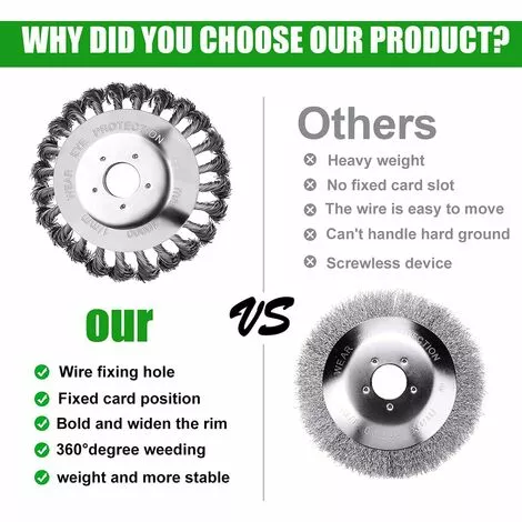 Matériau durable – La tête de tondeuse est constituée de brins de fil d’acier de haute qualité, avec une efficacité de coupe élevée, une efficacité élevée, une robustesse et une durabilité, et peut être utilisée pendant une longue période. C’est le partenaire idéal pour le désherbage du jardin.