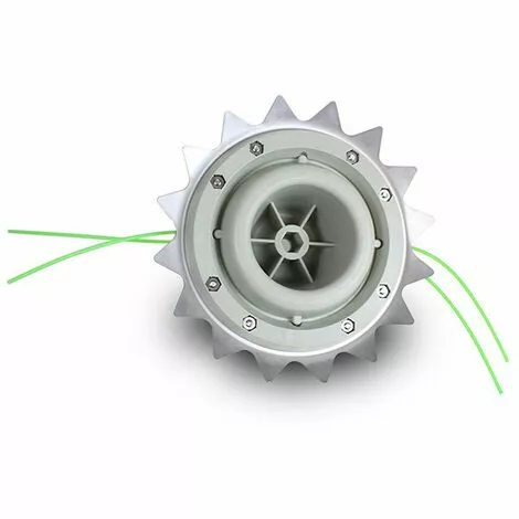 Coupe 2 fois plus vite grâce à l’effet Mulching des dents. Permet de monter du fil nylon jusqu’à 4 mm de diamètre.