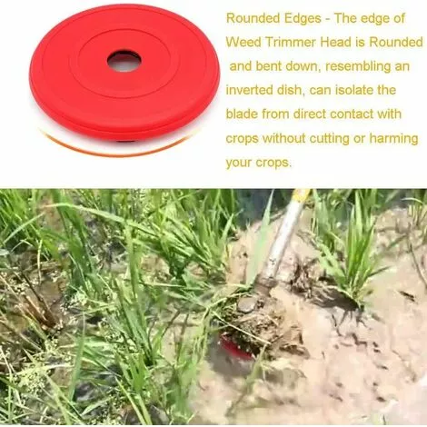 2. Bords arrondis – Le bord de la tête de coupe est arrondi et plié, ressemblant à un plat inversé, lui permettant de toucher toutes les mauvaises herbes autour de vos arbres sans les couper ou les endommager.