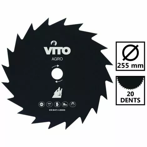 Cette lame de coupe pour débroussailleuse possède 20 dents pour un diamètre de 255mm.Alesage 25.4