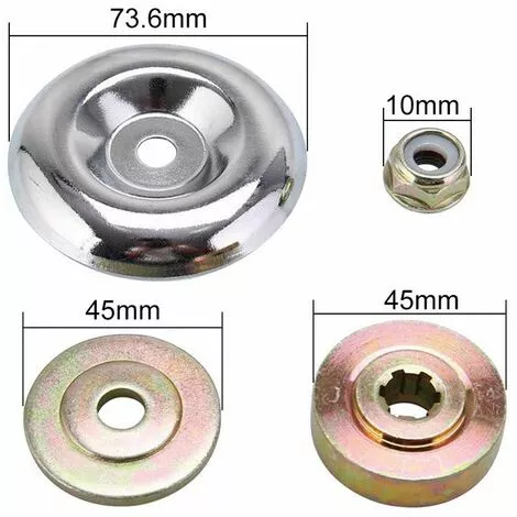 Pièces complètes: Accessoires de tête de tondeuse à gazon compris 1 x rondelle de butée, 1 x plaque de cavalier, 1x écrou de collier,1x rondelle de protection de plaque de poussée.